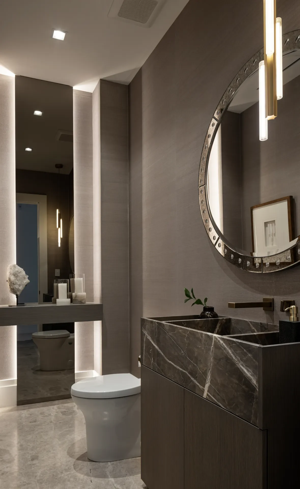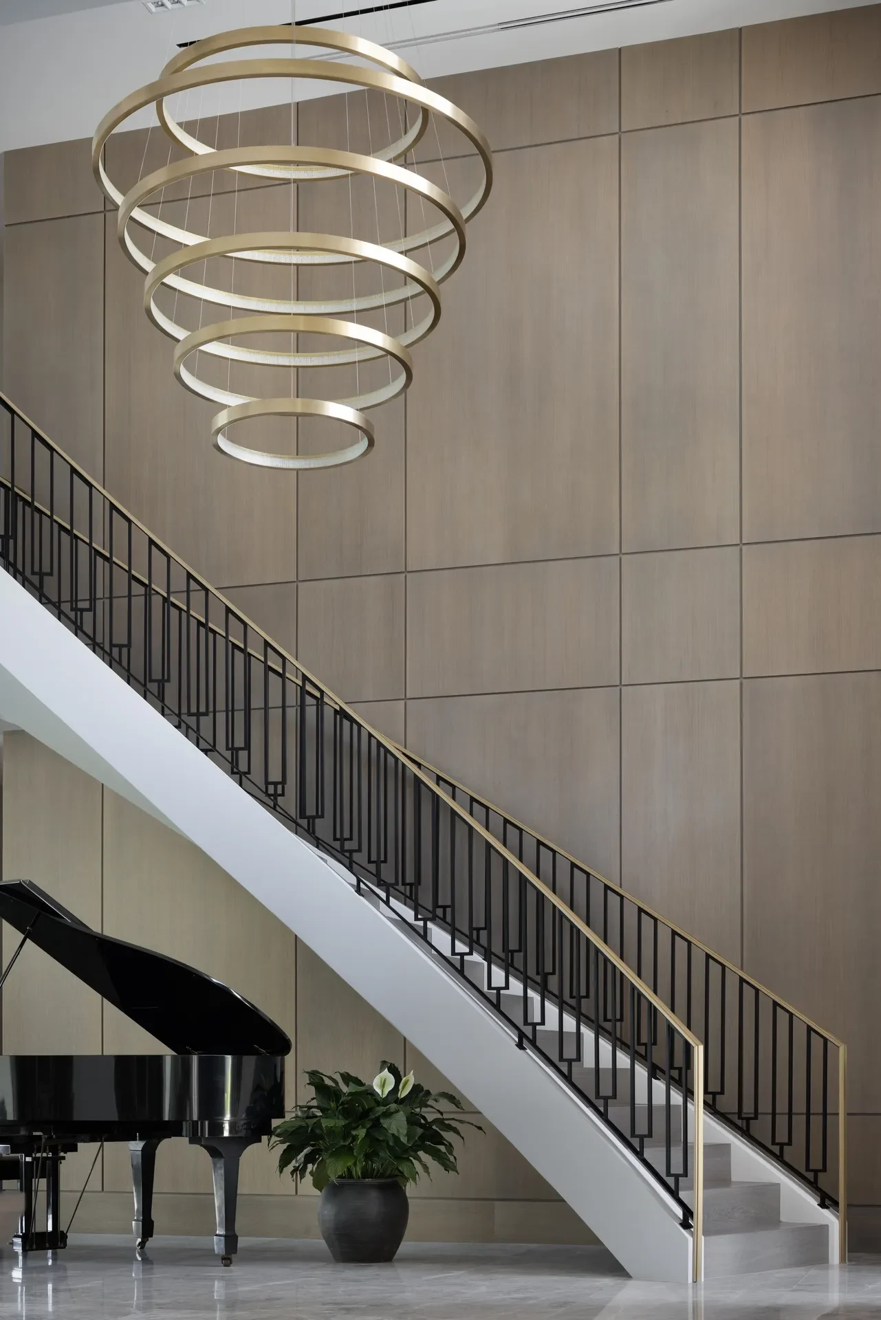 A TRANSITIONAL HOME REIMAGINED WITH CUSTOM DETAILING, SOFTLY CONTOURED LIGHTING, AND A REFINED MATERIAL PRESENCE.