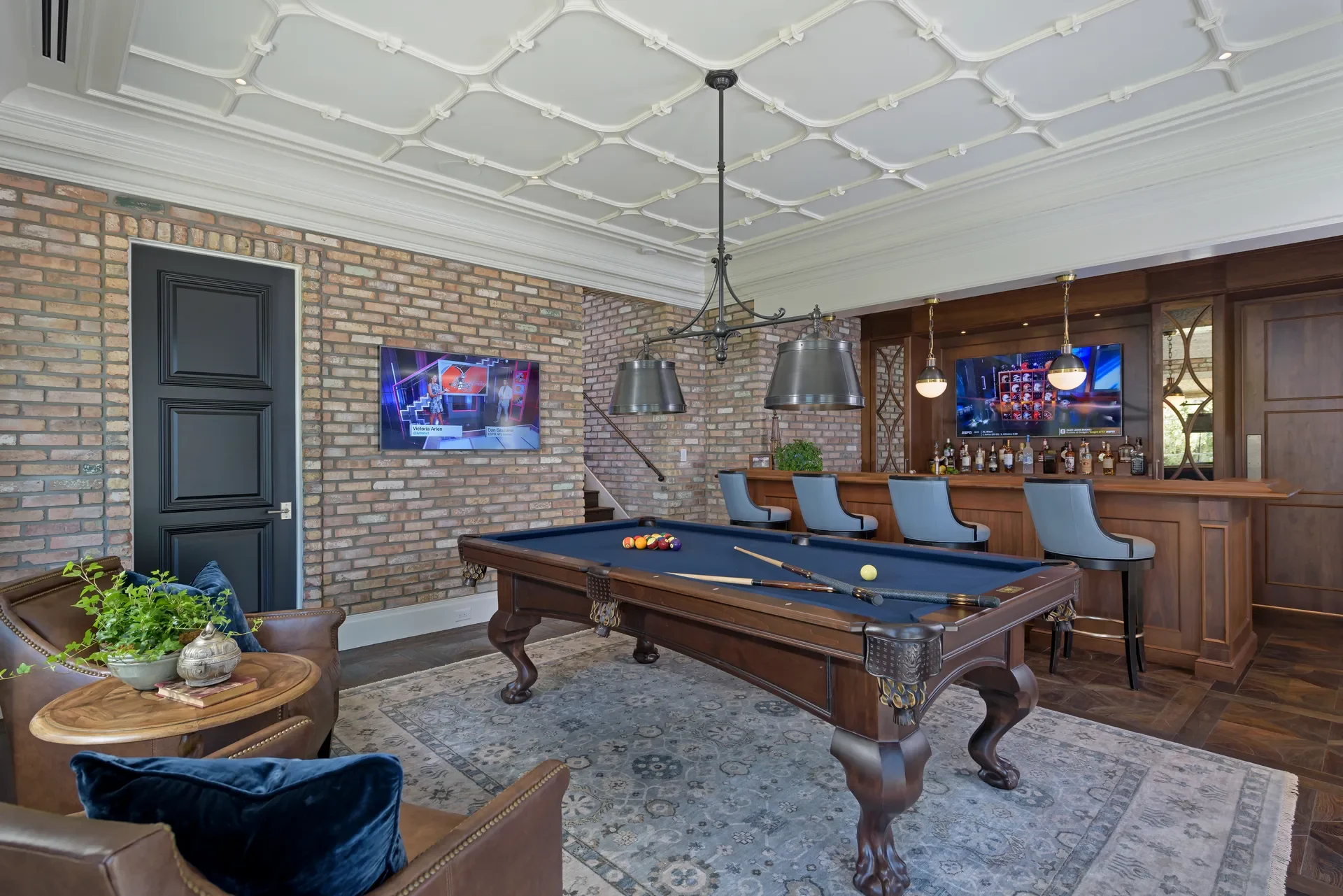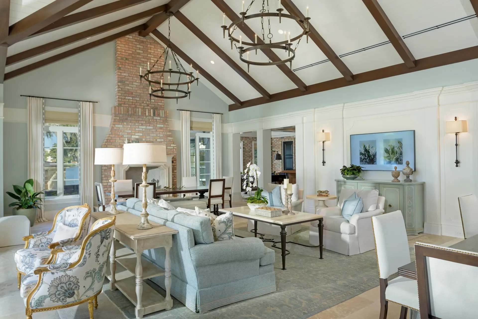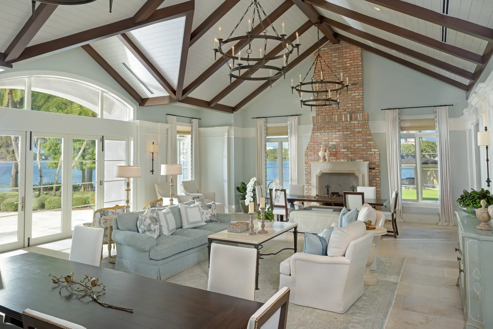 Rooted in the charm of Tudor revival architecture, this lakeside home underwent a transformative remodel that honors its architectural bones while reimagining the interior for modern living. The exterior’s steep gables, brickwork, and rich trim detailing create a stately presence, softened by light-filled interiors that embrace comfort and refinement. Inside, vaulted ceilings with exposed beams lend volume and warmth, while a palette of soft celadon, layered textures, and antique accents adds a gentle elegance. A mix of tailored upholstery, limestone flooring, and curated lighting updates the traditional framework without losing its soul. Designed for effortless entertaining and everyday ease, this home bridges past and present with quiet sophistication. The result is richly layered yet elegant—an old-soul home with a renewed spirit.