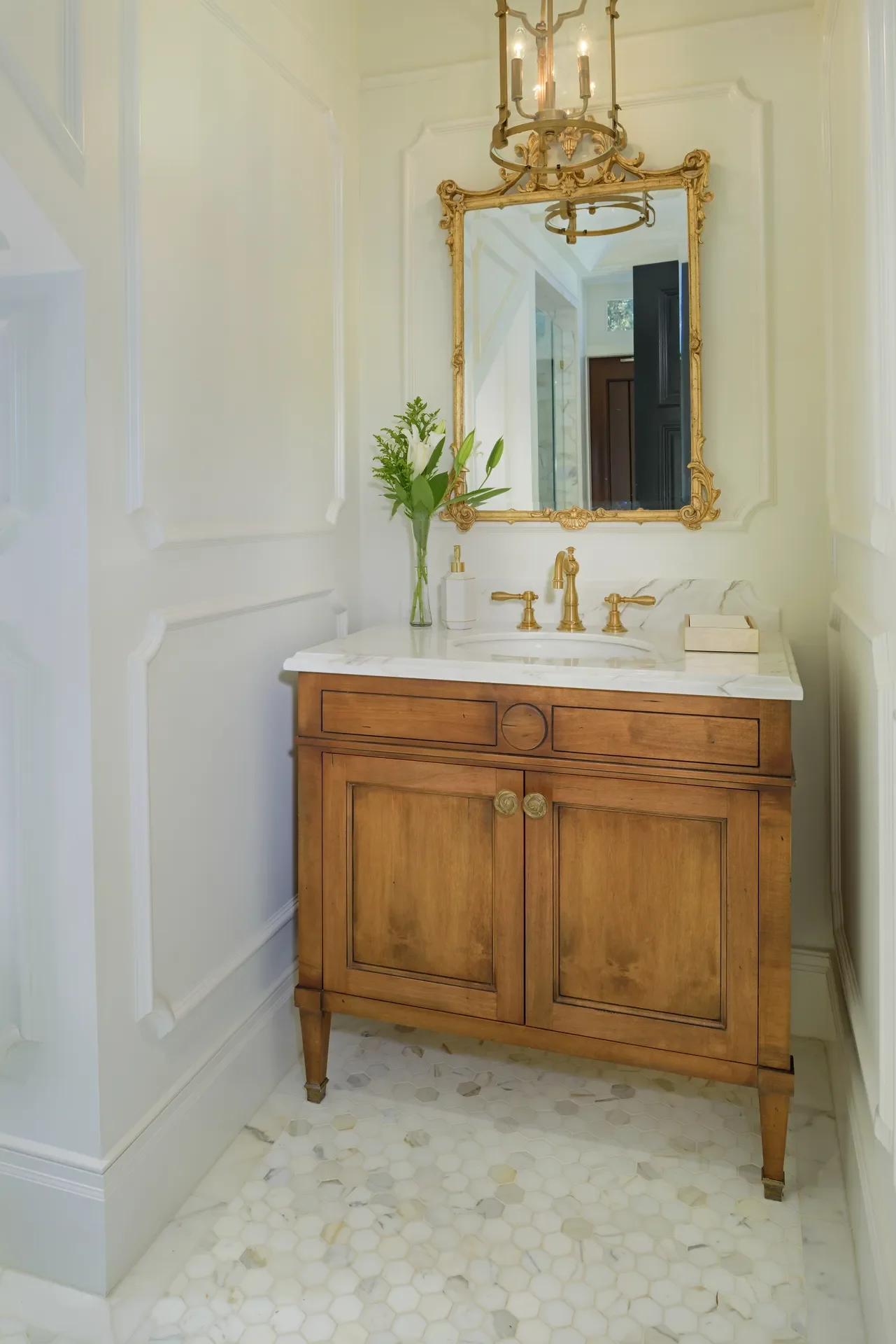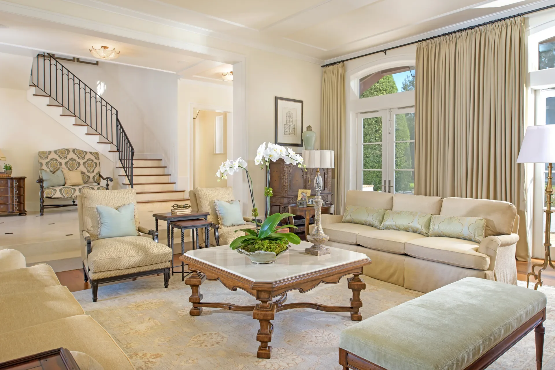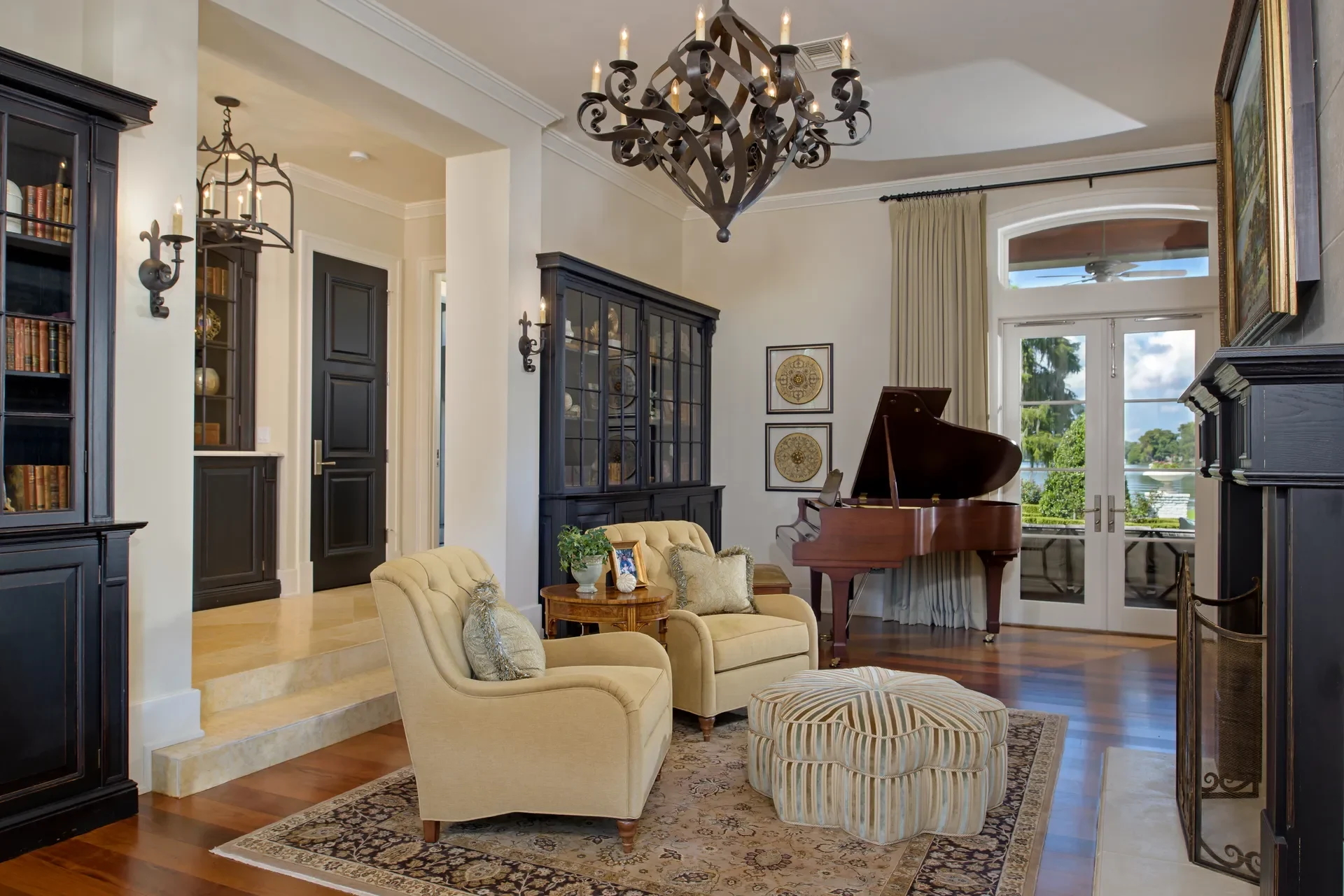 Rooted in the charm of Tudor revival architecture, this lakeside home underwent a transformative remodel that honors its architectural bones while reimagining the interior for modern living. The exterior’s steep gables, brickwork, and rich trim detailing create a stately presence, softened by light-filled interiors that embrace comfort and refinement. Inside, vaulted ceilings with exposed beams lend volume and warmth, while a palette of soft celadon, layered textures, and antique accents adds a gentle elegance. A mix of tailored upholstery, limestone flooring, and curated lighting updates the traditional framework without losing its soul. Designed for effortless entertaining and everyday ease, this home bridges past and present with quiet sophistication. The result is richly layered yet elegant—an old-soul home with a renewed spirit.