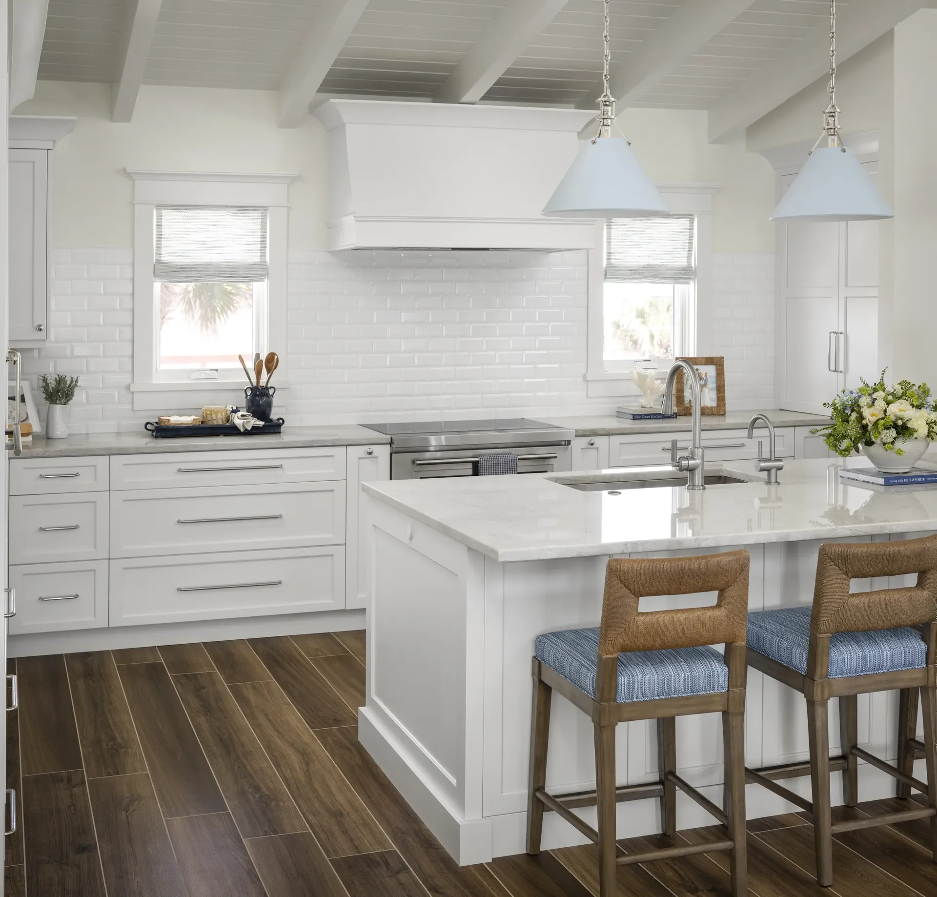Lovingly built by hand by its original owner, this beachside cottage held a gentle charm that our clients were determined to preserve. Situated beside their newly built main home, the structure was reimagined as a welcoming guest retreat—one that honors its original craftsmanship while supporting the rhythms of multigenerational coastal living. The design emphasizes both durability and ease, using performance fabrics, salt-air-friendly finishes, and family-proof materials that can stand up to sandy feet and everyday gatherings. Vaulted ceilings, whitewashed paneling, and a palette of soft blues and neutrals keep the space airy and relaxed, while natural textures and whimsical moments add warmth and soul. Every decision balances sentiment with function, resulting in a retreat that’s lasting, unfussy, and full of heart.